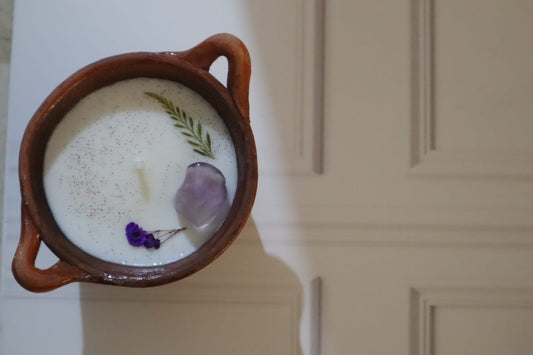 🪔Vela Artesanal en Casuelita de Barro - Amatista y Limón dulce
