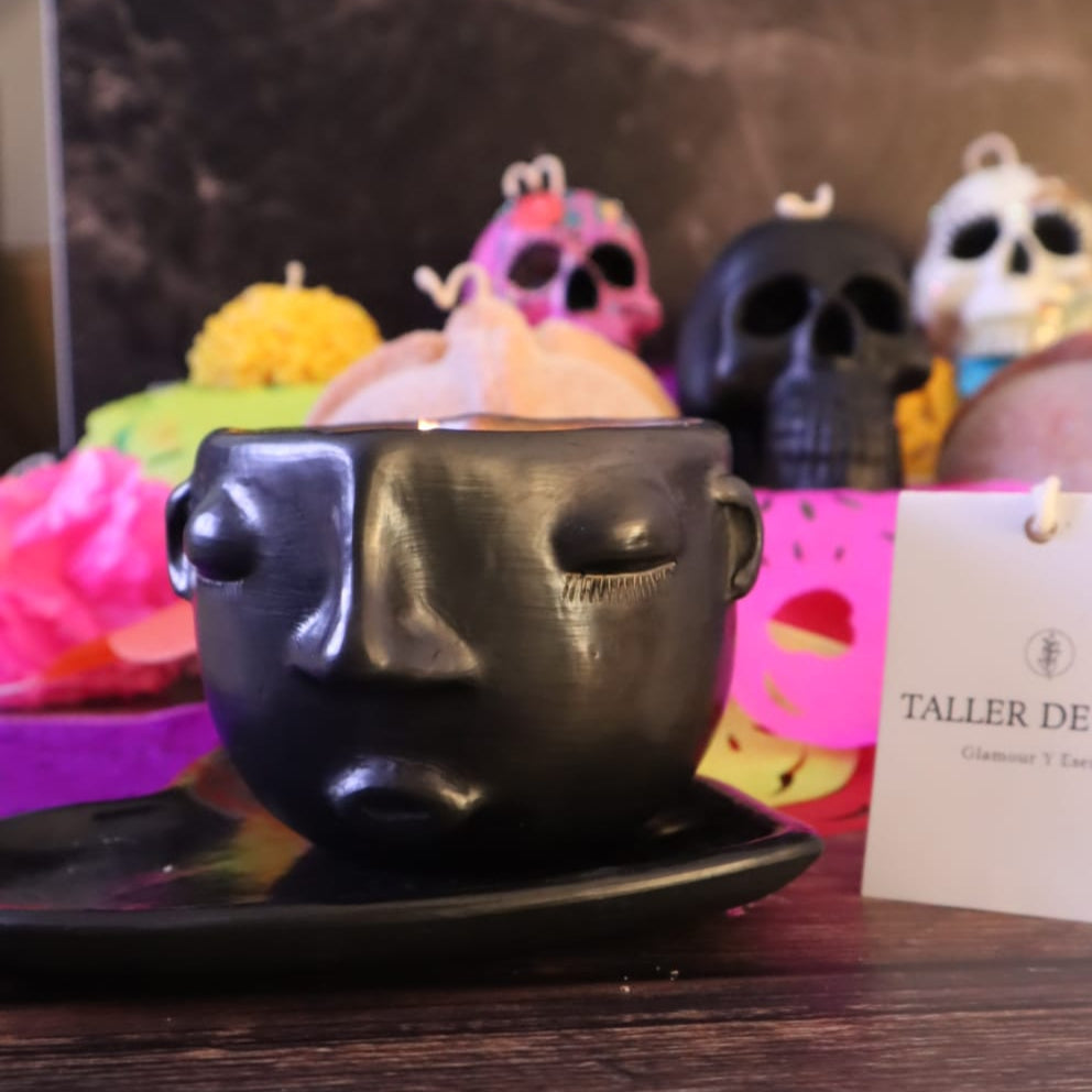 Esta pieza única ha sido elaborada en una taza de barro negro con rostro esculpido, originaria de oaxaca, y vertida cuidadosamente con cera aromática para crear una experiencia que combina arte, fuego y raíz ancestral.